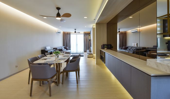 We often hear that certain designs are more popular with modern families or urban dwellers, but what exactly do these home owners seek? For starters, they appreciate open living spaces that offer easy access to gadgets, furniture and other areas of the house. JCS Design ensured that the entire common area within this apartment is amply spacious as it is also connected from the entrance all the way to the end of the hall in a straight line. Not only does the open space provide a flexible layout that is highly suitable for entertaining guests and promoting family interactions, it also made certain that the deeper parts of the apartment enjoy natural light.